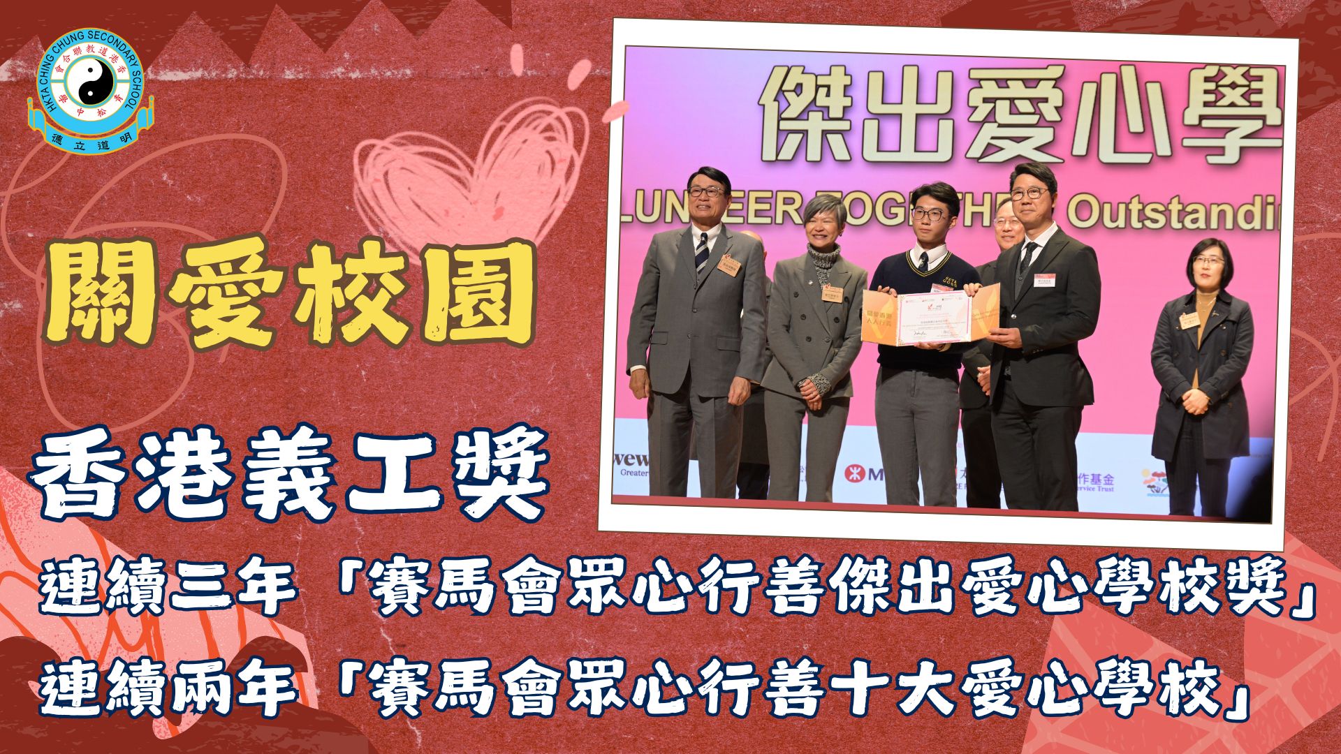 青松連續再次榮獲「賽馬會眾心行善傑出愛心學校獎」及「賽馬會眾心行善十大愛心學校」殊榮!