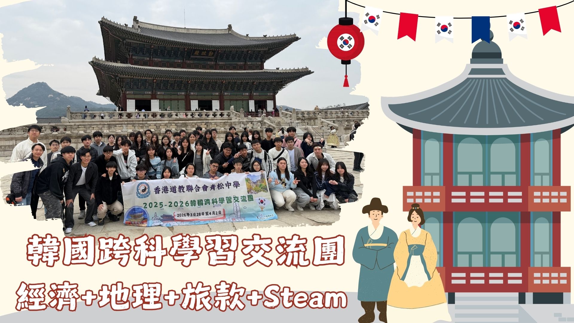 本校於2026年3月28日至4月2日,成功舉辦為期六天的「韓國跨科學習交流團」。本次交流由5位老師帶領50位學生遠赴韓國,展開一場結合經濟、地理、旅遊與款待(THS)及STEAM教育的深度考察,實踐跨領域學習的精神。